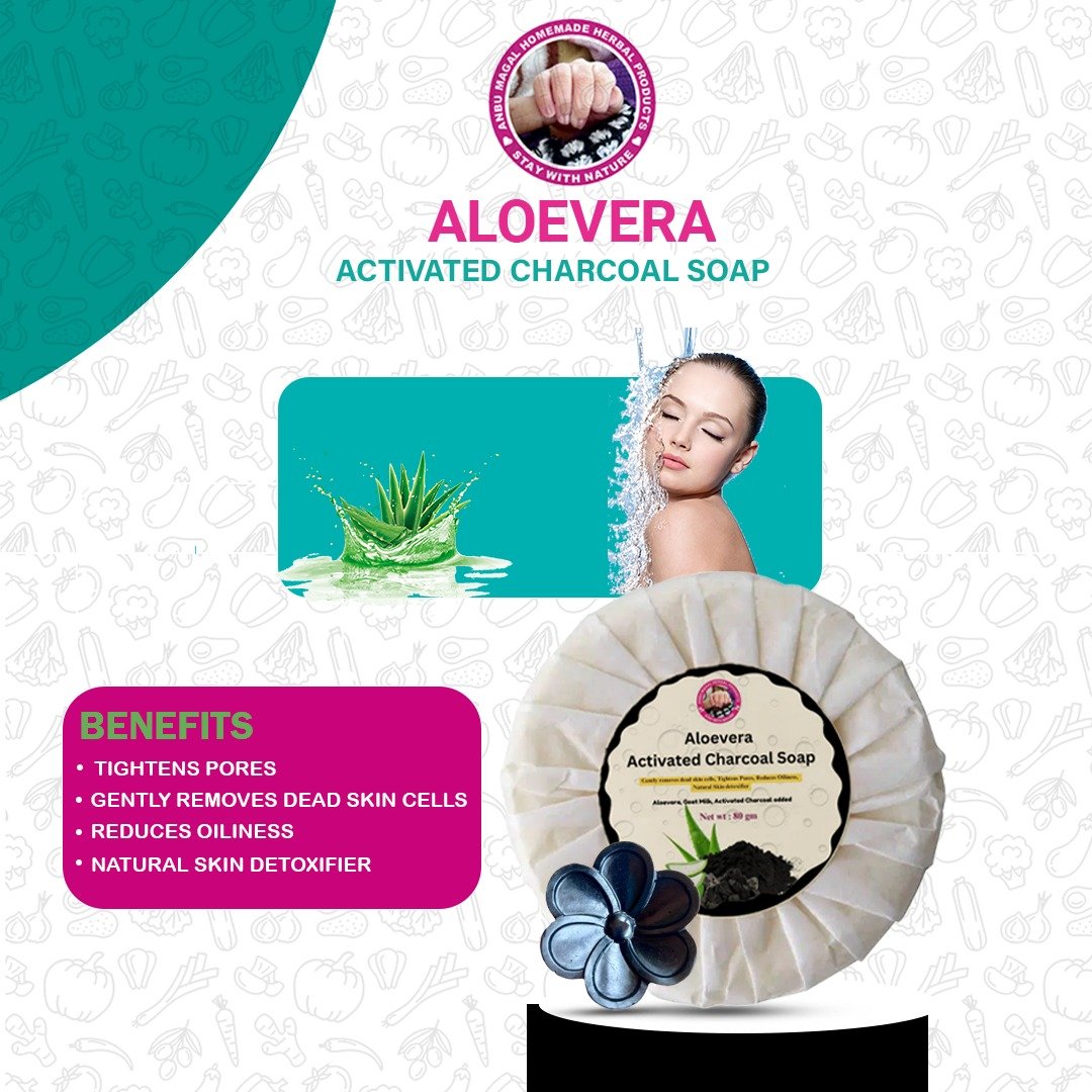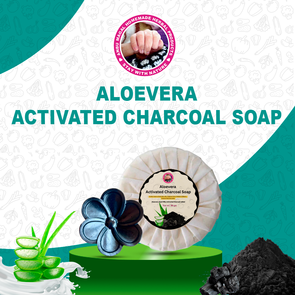 Aloe Vera & Activated Charcoal Soap is a natural and gentle cleanser that combines the soothing properties of aloe vera with the detoxifying power of activated charcoal. It leaves your skin feeling refreshed, hydrated, and deeply cleansed, making it ideal for all skin types.
