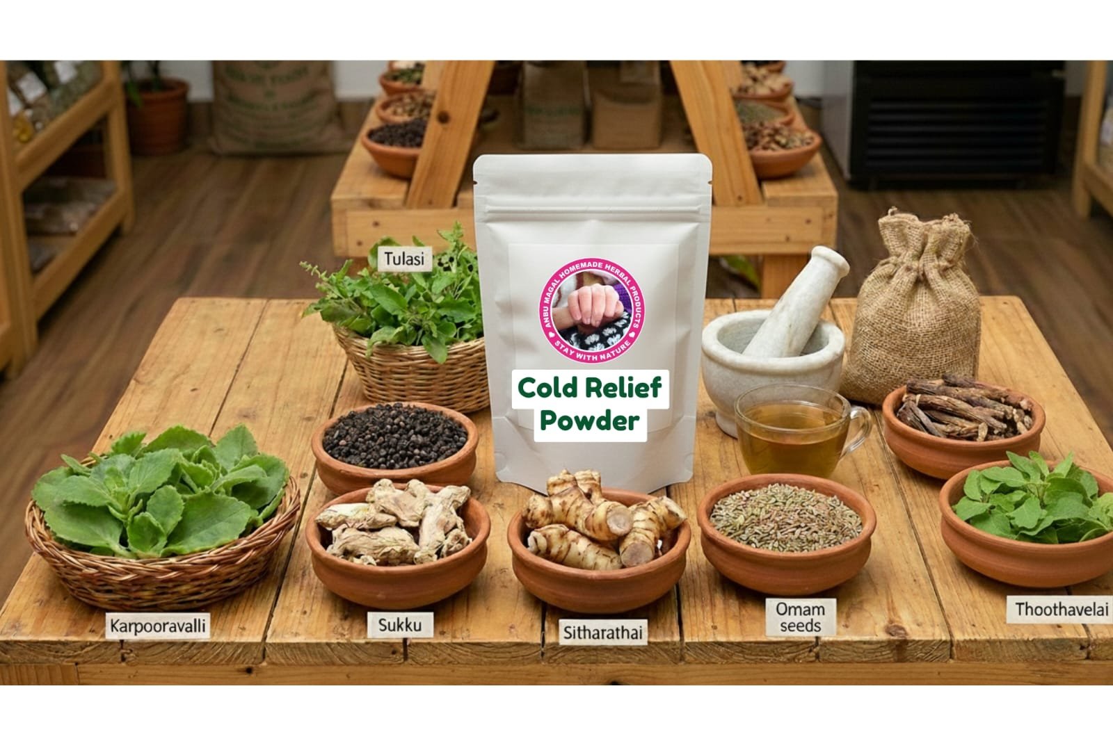 Tulasi, Karpooravalli, Vaal milagu, Omam, Thoothuvelai, Sitharathai, Sukku,..etc
