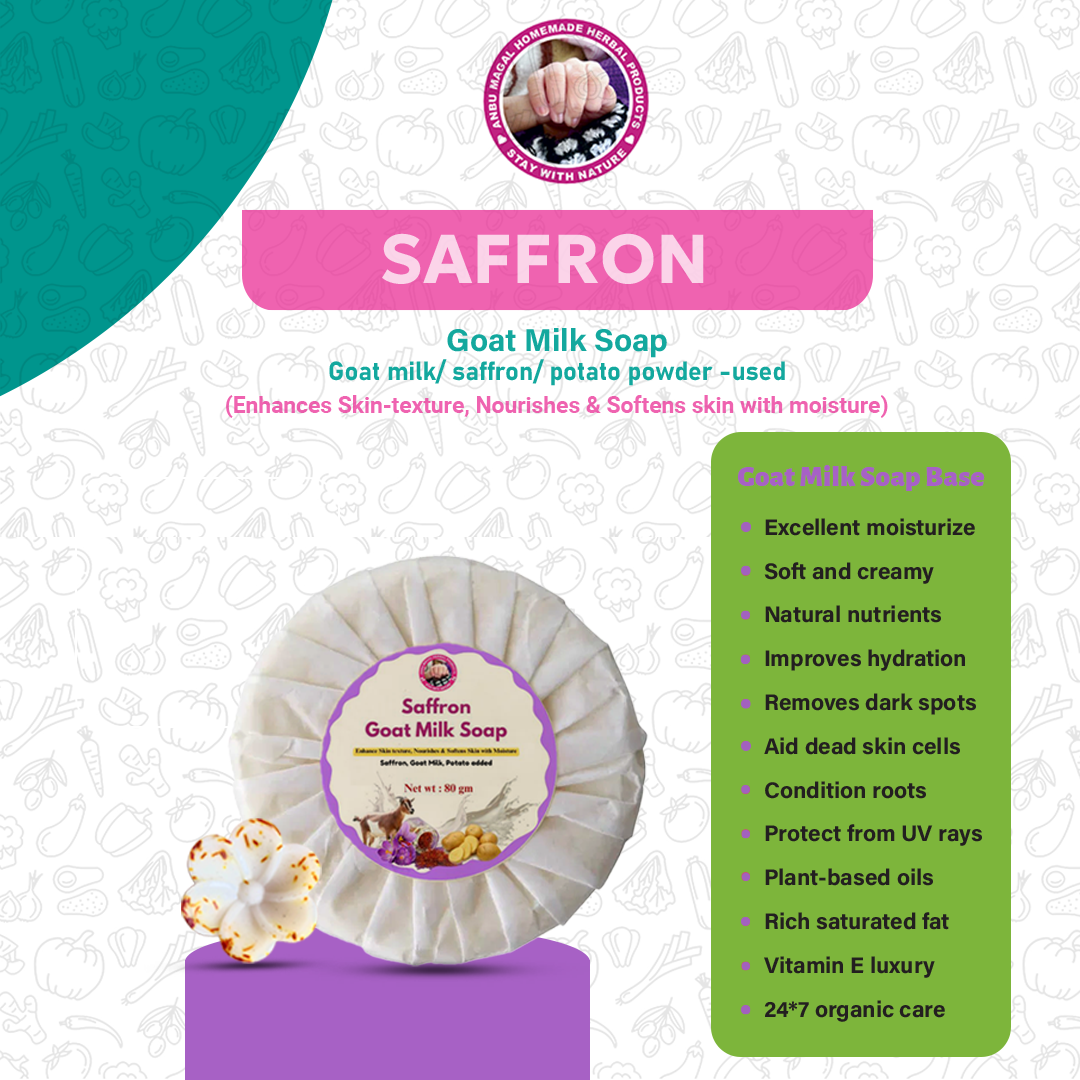3. Anti-Aging Properties: Goat milk and saffron help reduce signs of aging by promoting collagen production and skin rejuvenation.
